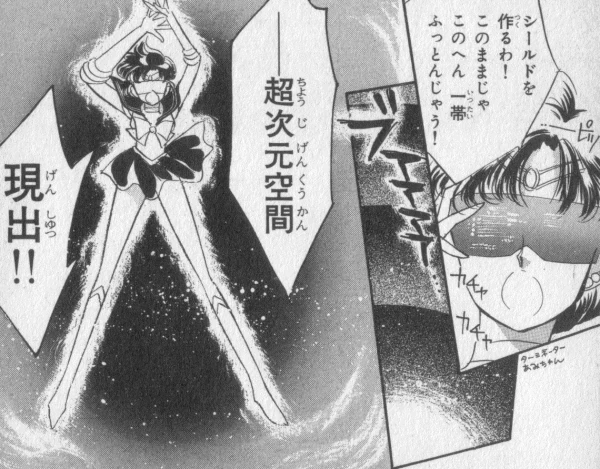 Sailor Mercury verwendet die Hyperraumdimension im Kampf gegen Queen Beryl und dem manipulierten Prince Endymion, um das Crown Game Center sowie Motoki Furuhata vor Schaden zu schützen[1].