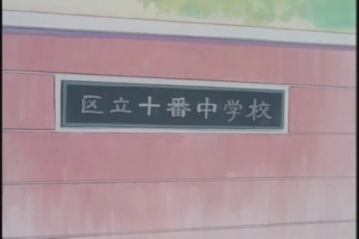 Das Namensschild der Juban-Mittelschule in der Animeserie